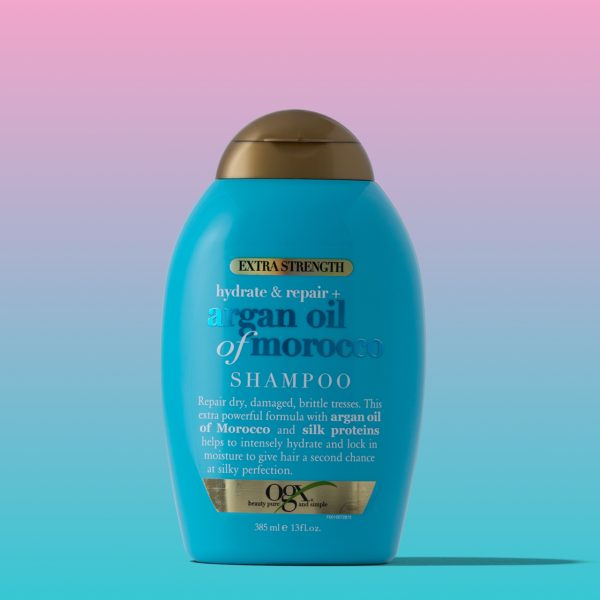 Hydrate, repair, and renew dry, damaged, brittle hair with OGX Extra Strength Hydrate & Repair + Argan Oil of Morocco Hydrating Hair Shampoo. Ideal for medium to coarse hair, the daily moisturizing shampoo quenches each strand as you lather up. Formulated with an extra-hydrating blend of water-based silk proteins and rich cold-pressed Moroccan argan oil, it helps revive hair to leave it cleansed, nourished, and silky smooth. The repair shampoo also helps improve hair strength and reduce breakage, leaving you with touchable tresses that are soft but strong. Plus, the coconut milk, tangerine, and warm vanilla scent make lathering up an all-around sensory experience that leaves locks with an irresistibly good smell. Paraben-free with sulfate-free surfactants, this nourishing shampoo is gentle enough to give locks a radiant shine.