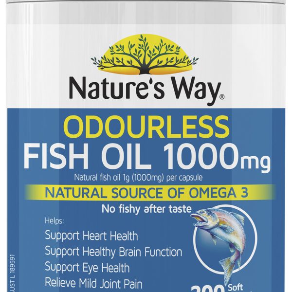 Nature’s Way Odourless Fish Oil 1000mg is completely free from any fishy odour with no artificial colours or sweeteners.