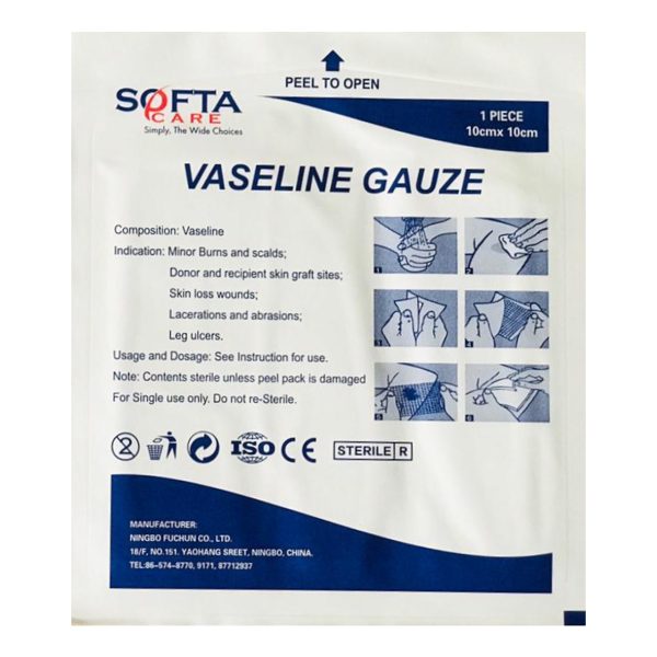 SOFTACARE VASELINE GAUZE 10CM X 10CM