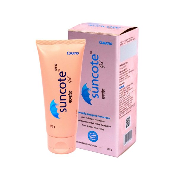 Suncote gel is a water-based gel with hydro technology that protects the skin against UVA and UVB rays by providing a chemical barrier to sunlight. It is non-comedogenic with a high SPF value of 30.