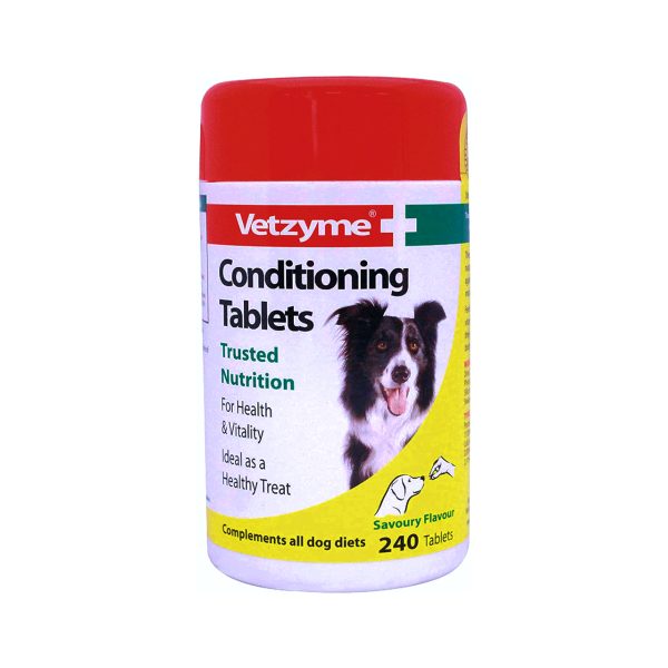 As B-complex vitamins are water-soluble, they cannot be stored in the body to any great extent. Therefore Vetzyme Conditioning Tablets are an ideal way of boosting your dog’s supply of these important vitamins throughout the day.