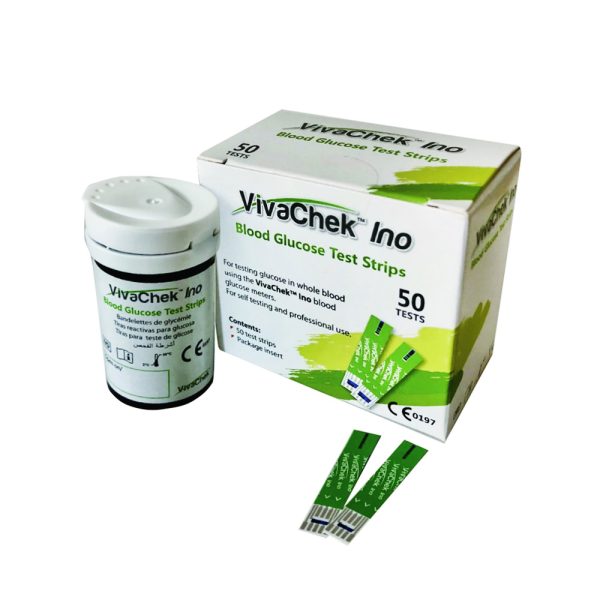 - The vivachek ino blood glucose test strips are thin strips with a chemical reagent system.